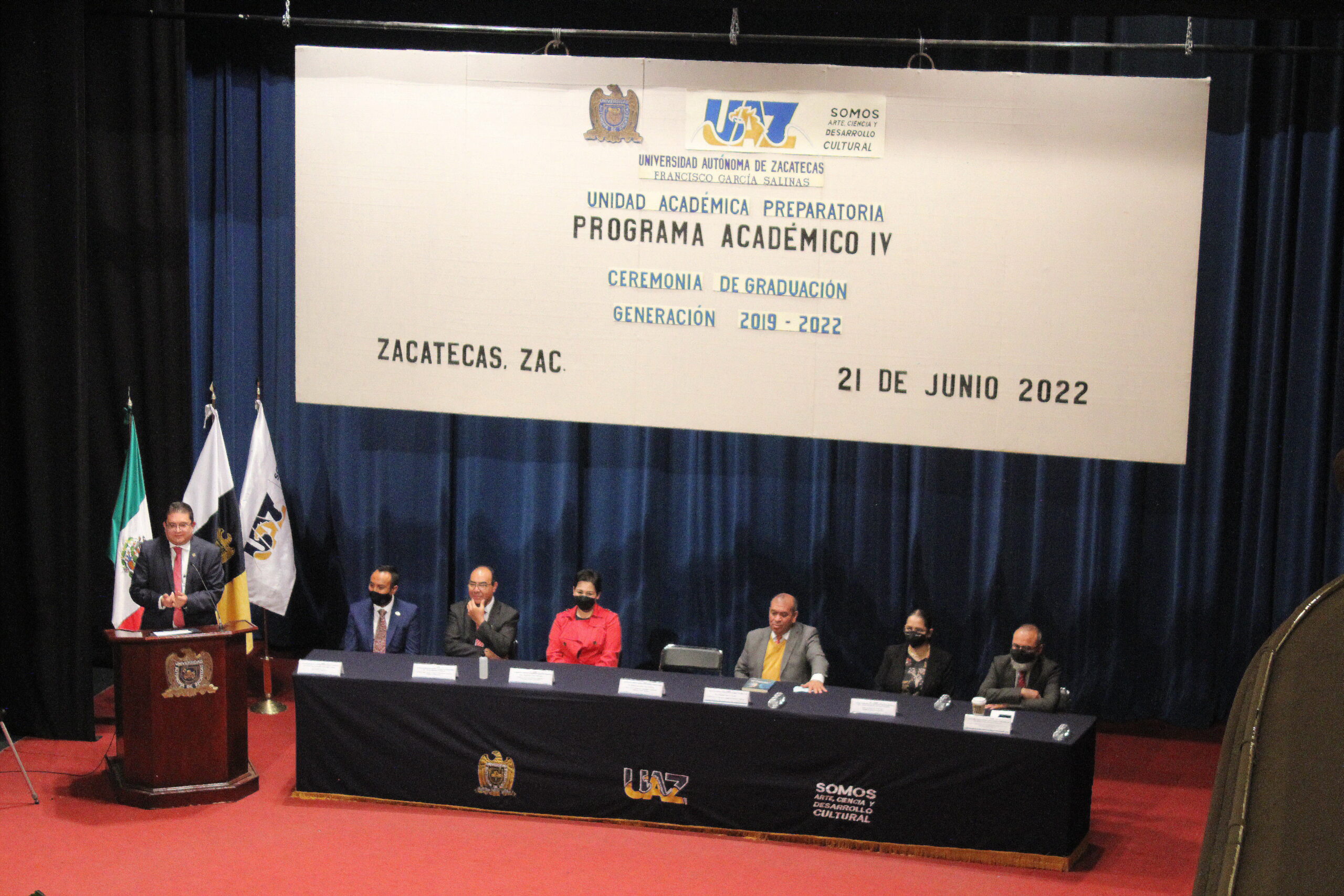 Como sede el emblemático Teatro Fernando Calderón, se llevó a cabo la ceremonia de entrega de cartas bachiller del Programa IV, en la que el rector de la Máxima Casa de Estudios, Rubén de Jesús Ibarra Reyes, felicitó a los egresados y los invitó a transformar el mundo, ya que, señaló “no son el futuro de Zacatecas, sino el presente”.