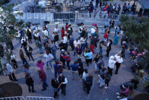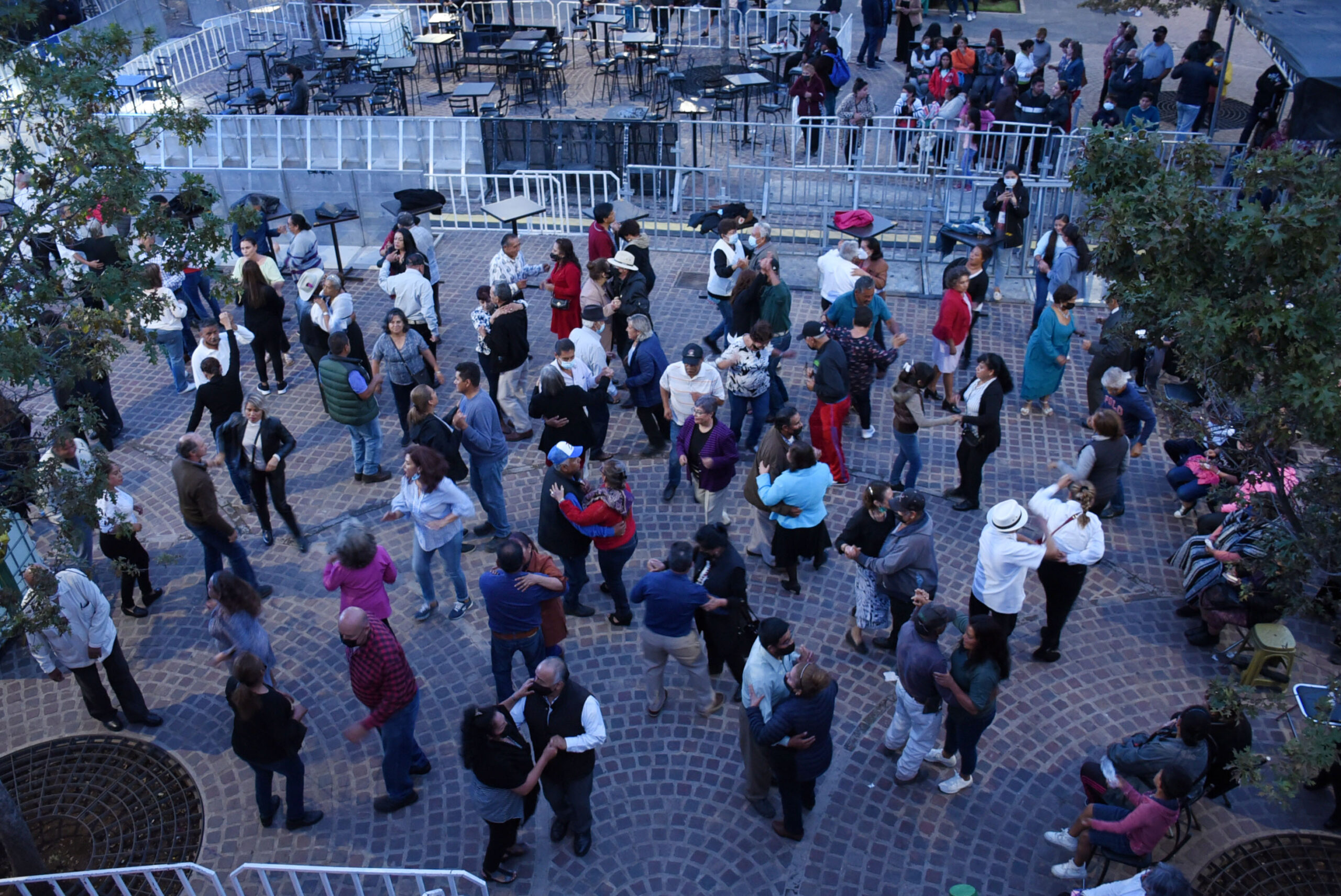 Desde el escenario, J. Guadalupe Rangel en los teclados y Mónica Hernández en la voz, invitaban a la gente a disfrutar la tarde y las parejas en la pista les respondieron coreando y -por supuesto- bailando al ritmo de danzón, cumbias y otros géneros que consideraron en el repertorio.