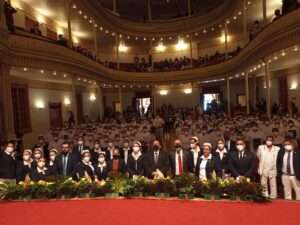 Asimismo, destacó el mandatario universitario que, con este acto, “se entrega a la sociedad zacatecana un ejército de profesionales con gran vocación de servicio, formados en la disciplina, con un valor ético y humano”. Ahí, los exhortó a que, con su dedicación y esfuerzo, “brinden soluciones a las problemáticas sociales, por el amor que tienen hacia los demás”.