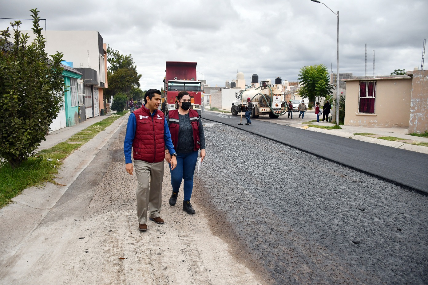 El Presidente Municipal de Guadalupe, Julio César Chávez Padilla, supervisó el reencarpetamiento que se lleva a cabo en la Calle Circuito de la Colonia Villa Fontana.