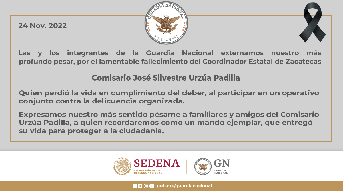 Muere Coordinador de la Guardia Nacional en Zacatecas.