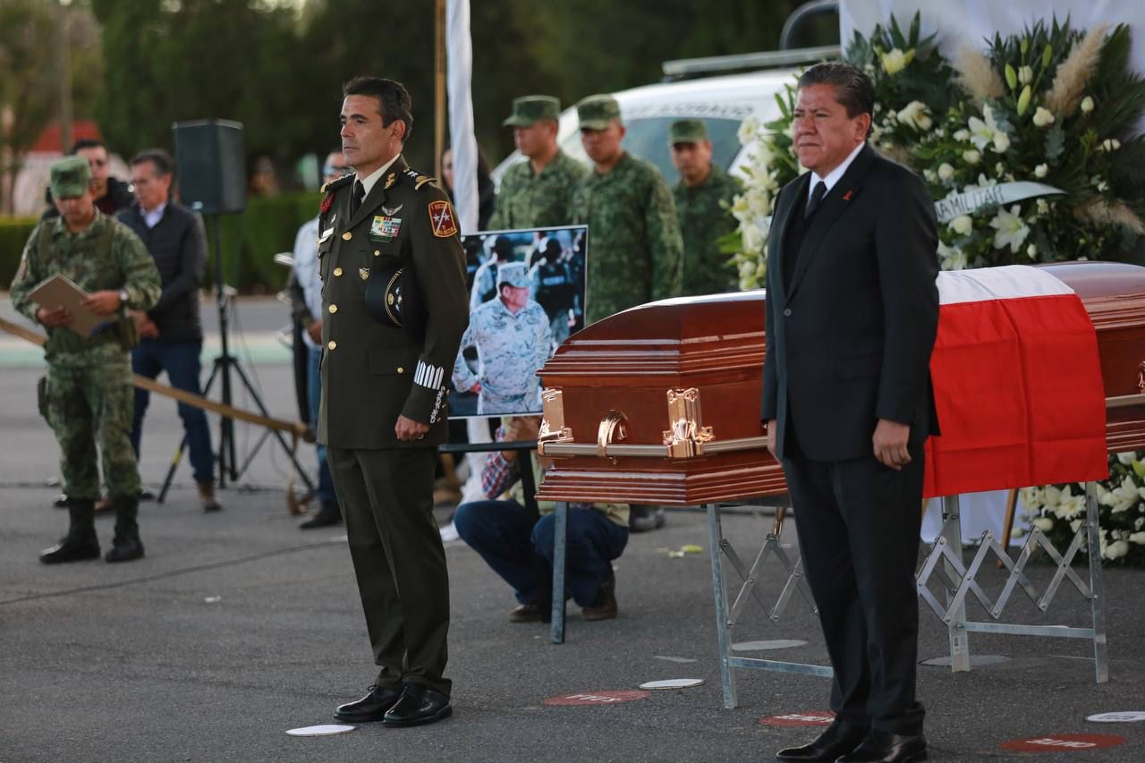 David Monreal Ávila, Gobernador del Estado y mandos militares rindieron un homenaje de cuerpo presente al ex coordinador estatal de la Guardia Nacional en Zacatecas, José Silvestre Urzua Padilla, caído en cumplimiento de su deber el jueves pasado.