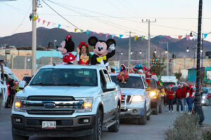 Santa Claus, renos, duendes, Minnie y Mickey Mouse, entre otros personajes fueron parte de la caravana navideña, quienes saludaron a los grupos de personas que observaban por primera vez este evento.