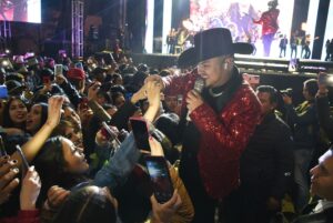Al interpretar ‘Tú’, su canción más conocida, que grabaron a dueto y en vivo en el Estadio Victoria de Aguascalientes ante 30 mil personas, el vocalista se bajó del escenario para tomarse fotos y videos con las fans que se encontraban cerca.
