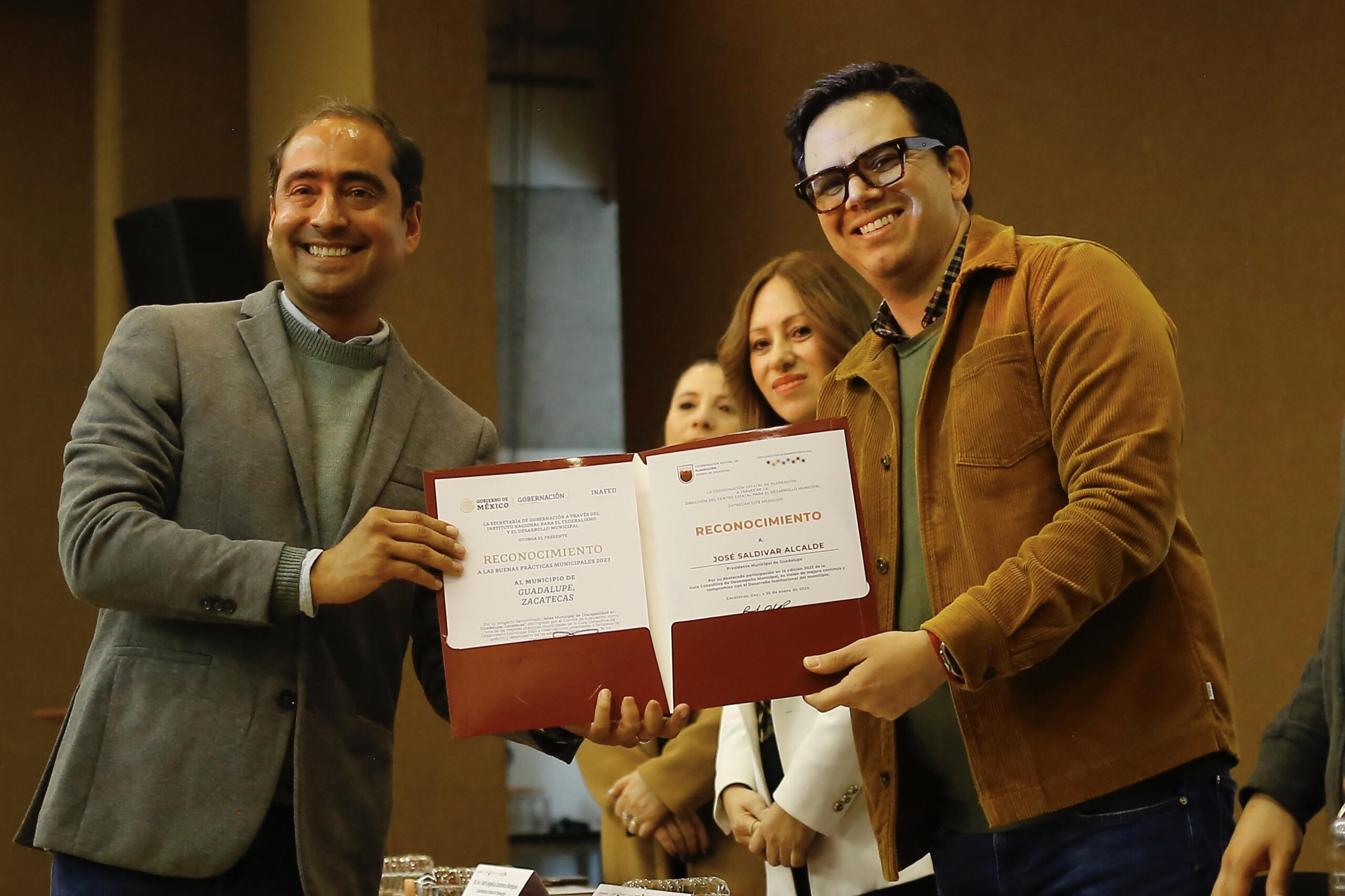 Por tercer año consecutivo, el Gobierno de Guadalupe, Zacatecas, que preside Pepe Saldívar es galardonado por el Gobierno de México a través del Instituto Nacional para el Federalismo y el Desarrollo Municipal (INAFED), al otorgarle el reconocimiento de Buenas Prácticas Municipales por el proyecto denominado ‘Atlas Municipal de Discapacidad’ y por haber obtenido un 92.5% de calificación -siendo la más alta a nivel nacional- en la Guía Consultiva de Desempeño Municipal.