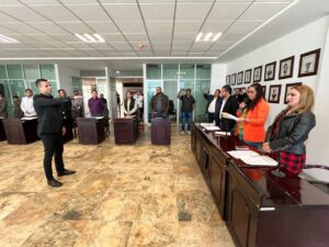 Dando seguimiento al protocolo de ley, Ricardo Flores Pereyra rindió protesta frente a los integrantes del cabildo, asumiendo el compromiso de trabajar en esta dirección y de generar actividades que beneficien a los fresnillenses, así como al sector empresarial.