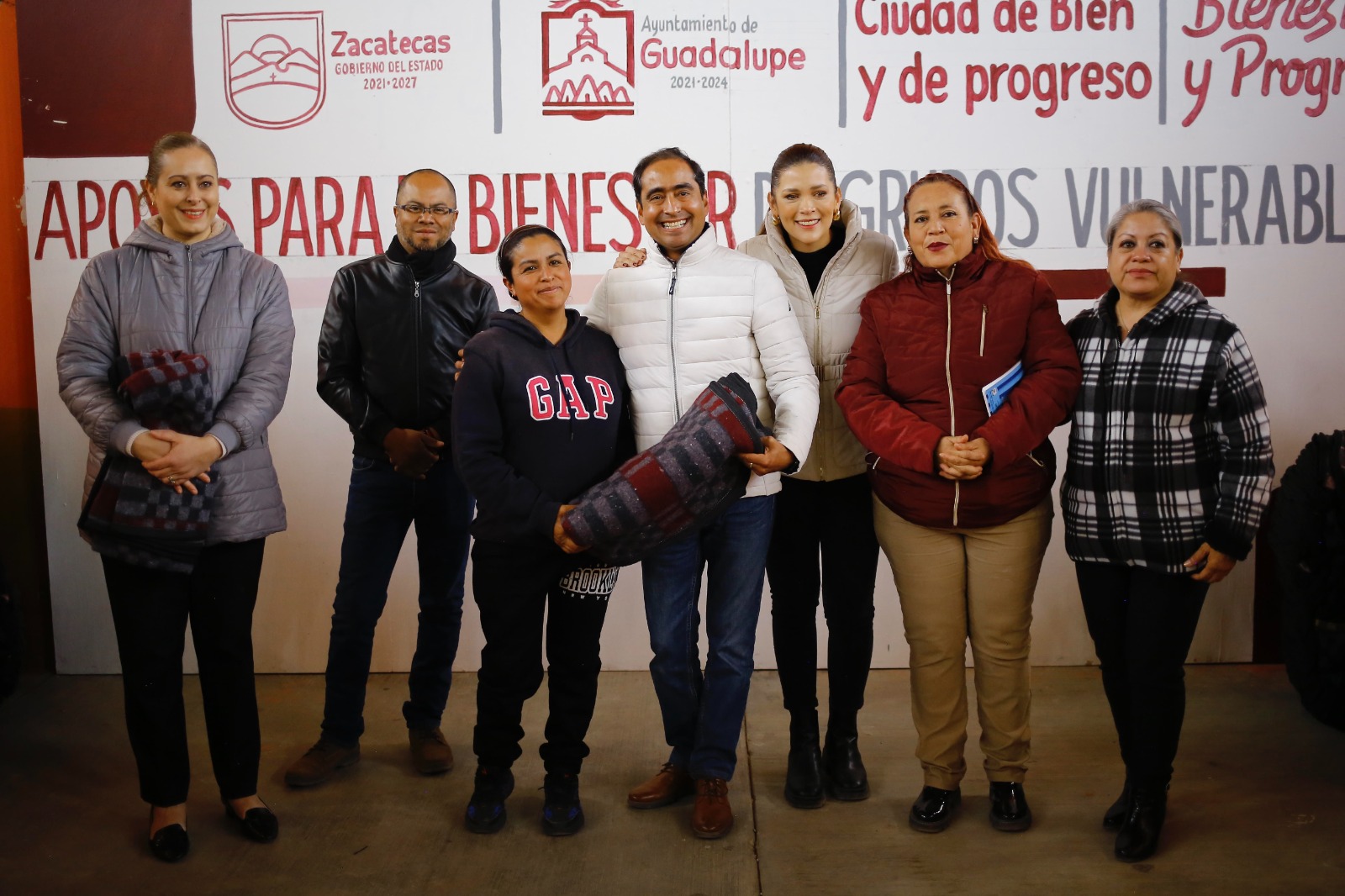 Como parte del programa denominado ‘Apoyos Invernales Para Grupos Vulnerables’, el Gobierno Municipal de Guadalupe, que preside Pepe Saldívar, realizó la entrega de cobijas a vecinos de la comunidad de Santa Mónica.