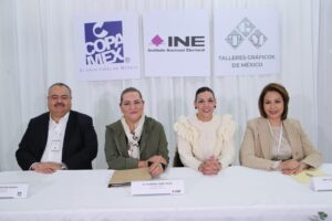Taddei Zavala informó que, en colaboración con Talleres Gráficos de México (TGM), la autoridad electoral inició la producción de aproximadamente dos mil 192 toneladas de papel seguridad, marca de agua bitonal con el logotipo “INE”, que se utilizará para el Proceso Electoral Federal (PEF) 2023-2024.