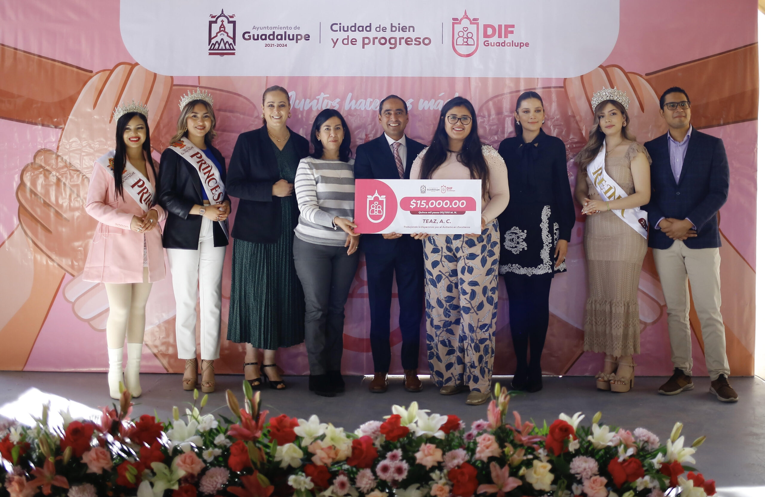 Como parte de las estrategias de apoyo a grupos vulnerables, el Gobierno de Guadalupe, que preside Pepe Saldívar, a través del Sistema Municipal DIF y del programa denominado ‘Reina con Causa’ correspondiente al Patronato de la Feria Estatal de la Virgen en su edición 2023, se llevó a cabo la entrega de donativos económicos y en especie a diversas asociaciones civiles.