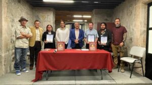 Reynaldo Beache Pérez, director del Instituto Municipal de Cultura y Hugo Jiménez Álvarez, coordinador del Ágora reconocieron a cada artista por su participación dentro del Festival Cultural Fresnillo 2024.