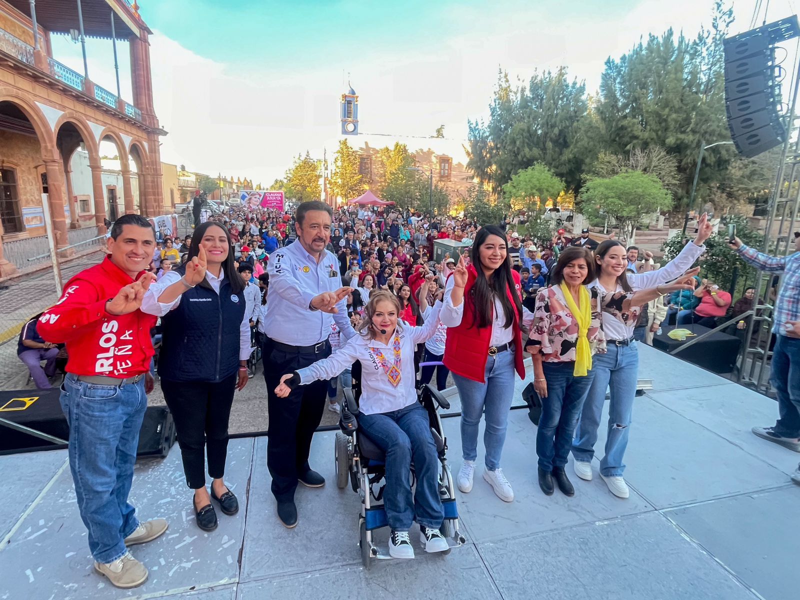 El arranque de campaña tuvo lugar a un costado de la llamada Casa Grande, en donde estuvieron acompañados por el presidente estatal del PRI, Carlos Peña; y de las Presidentas PRD, Lupita Hernández; y del PAN, Verónica Alamillo; la Legisladora Federal, Fuensanta Guerrero; y cientos de militantes y simpatizantes de los tres partidos que desean detener la destrucción del país.