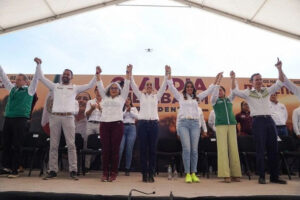 Por su parte, Ruth Miriam González Silva, candidata por Morena al Senado de la República, destacó que en San Luis Potosí, la unidad hace la fuerza para que juntos Morena, el Partido del Trabajo, el Partido Verde Ecologista de México y el pueblo del estado sigan haciendo historia.