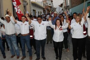 Moyahua de Estrada, Zacatecas.- Desde el Municipio de Moyahua de Estrada, en el sur del Estado, la candidata a la Diputación Federal, Julia Olguín, acompañó al candidato al Senado de la República, Saúl Monreal Ávila, y a la candidata a la Presidencia Municipal, Norma Castañeda, en un mitin donde los aspirantes respaldaron a la candidata a la presidencia municipal, promoviendo el voto 5 de 5, todo por MORENA.