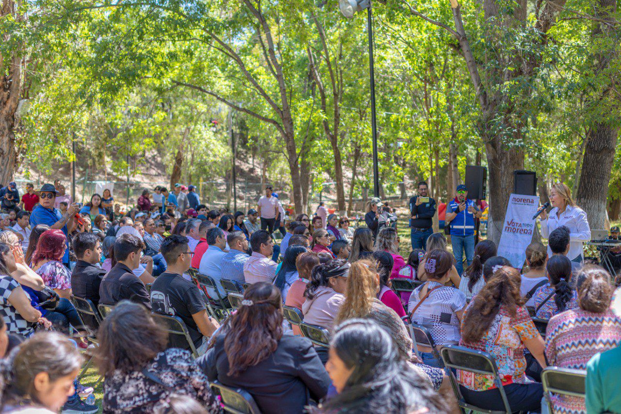 En el diálogo que la candidata sostuvo en el parque Arroyo de la Plata, expresó su entusiasmo por encontrarse con aliados en la lucha por el bienestar de Zacatecas, ante los que subrayó «estamos construyendo el segundo piso de la transformación y del bienestar para todas y todos».