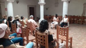 Esta sesión desarrollada por el tallerista Jesús Gibrán Alvarado Torres, fue llevada a cabo en el edificio de la Torre en el municipio de Jerez, y con ella se cerró la práctica, haciendo énfasis en el rescate de los espacios jerezanos a través de la escritura y la fotografía, subrayó la profesora universitaria.