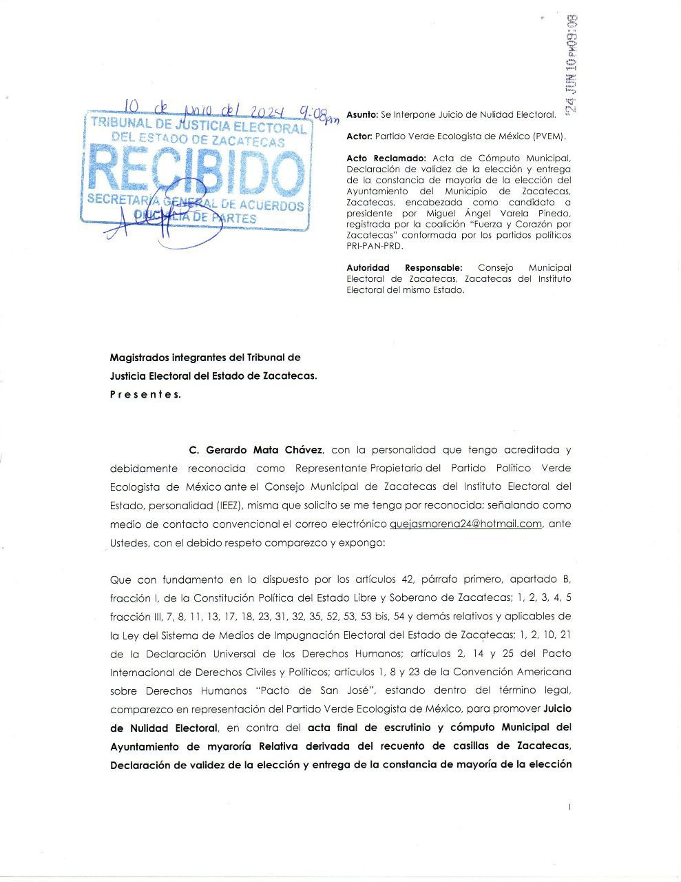 Morena y PVEM esperan que estas graves irregularidades sean consideradas para la anulación de la elección y la convocatoria a una nueva jornada electoral justa y transparente.