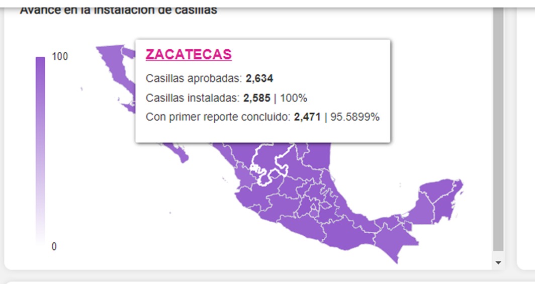 Con corte a las 13:50 horas, se reporta la instalación del 100% de las 2 mil 634 casillas.