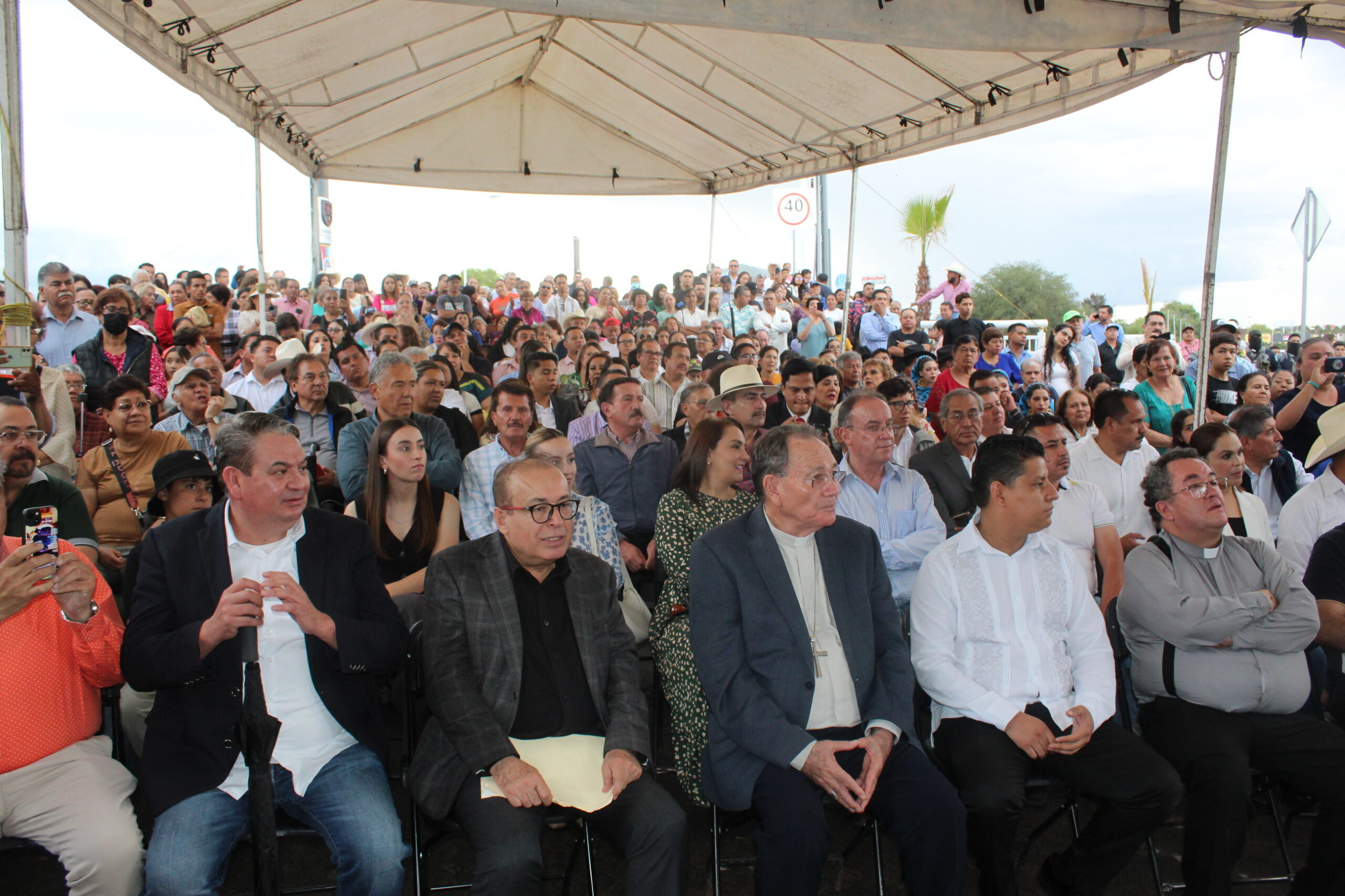 Rio Grande, Zac.-En una integración social entre autoridades locales y ciudadanos acudieron a develar la placa y la bendición del nuevo puente del Aguanaval, en donde las emociones de los propios riogenses se mostraron a flor de piel con esta obra vial tan trascedente para la vida económica, social, política y económica de Río Grande, siendo el obispo Sigifredo Noriega Barceló realizo la misa y bendición.
