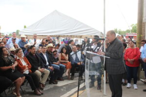 Arturo Nahle destacó el impacto regional de la obra en la zona norte de Zacatecas, quien con emoción destaco la alegría de muchos, de estar presentes en este día histórico que será para los tiempos posteriores en la vida e historia de Río Grande, un momento único donde no solo develarán una placa por esta obra, pues serán participes de una celebración que debe ser un parteaguas.
