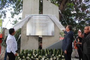 Posteriormente Mario Córdova Longoria, Arturo Nahle García y el Obispo Sigifredo Noriega Barceló, develaron la placa conmemorativa del puente nuevo del Aguanaval.