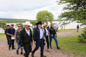 Acompañado por el Alcalde de Miguel Auza, Armando Perales Gándara, y por autoridades de la Comisión Nacional del Agua (Conagua) y de las secretarías del Campo (Secampo) y del Agua y Medio Ambiente (SAMA), el Gobernador David Monreal destacó la importancia de la cosecha de agua y su adecuada distribución.
