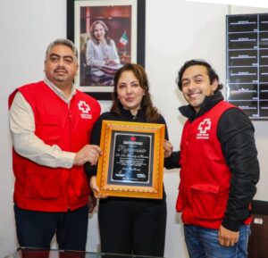 Por ser partícipe en diferentes actividades de colecta y por donar de manera frecuente material e insumos médicos que fortalecen a la Cruz Roja Mexicana, Delegación Zacatecas, a nombre del Gobierno del Estado, la Presidenta Honorífica del SEDIF fue reconocida por integrantes de esta institución, a quienes, dijo, seguirá contribuyendo en la noble labor de ayudar.