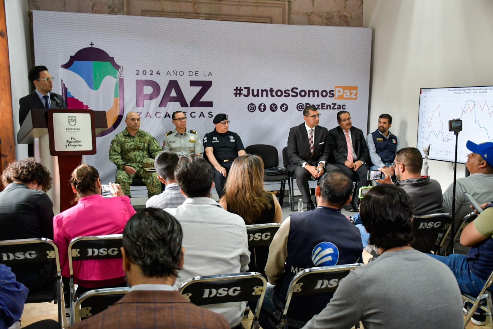 El Secretario General de Gobierno, Rodrigo Reyes Mugüerza, destacó que en el estado se registra una importante reducción en delitos de alto impacto; específicamente en homicidio doloso, Fresnillo cuenta 61 casos en el presente año, lo que representa una disminución superior al 50 por ciento, en comparación con 2023, y en Zacatecas capital, de más de 70 por ciento.