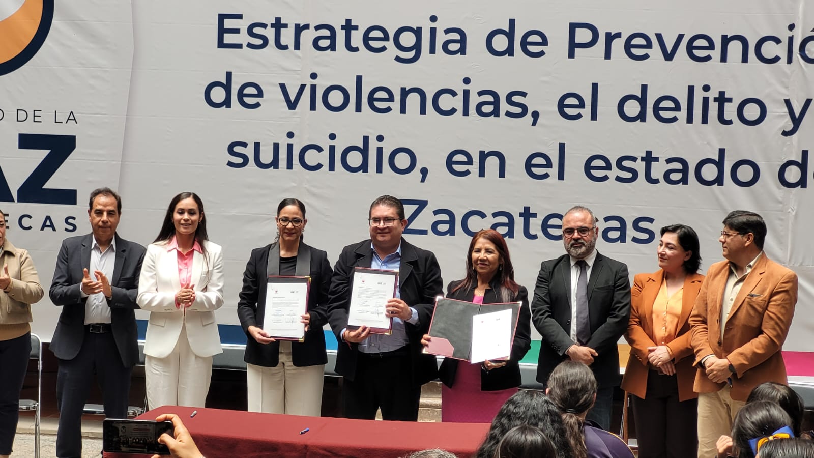 Con el objetivo de implementar el “Modelo de Sinergias Emergentes”, sobre prevención social de las violencias, el delito y el suicidio, se llevó a cabo la firma de convenio entre la Secretaría de Educación del Estado de Zacatecas (SEDUZAC) y la Universidad Autónoma de Zacatecas (UAZ) a través de la Unidad Académica de Desarrollo y Gestión Pública (UADGP), la cual encabezó la secretaria de Educación, María del Carmen Salinas Flores, con la compañía de la subsecretaria, María de las Nieves Hernández Ramírez; así como el rector de la Universidad, Rubén de Jesús Ibarra Reyes, y el director de la UADGP, Marco Antonio Torres Inguanzo.