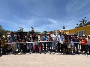 Fresnillo, Zac.- Para dar cumplimiento al compromiso de impulsar el crecimiento de las comunidades con obras públicas, la alcaldesa Rita Rocío Quiñones de Luna visitó El Mezquite, Felipe Ángeles “El Barranco”, Potrero Blanco y San Cristóbal para entregar a los ciudadanos calles pavimentadas y mejoras en las redes de drenaje.