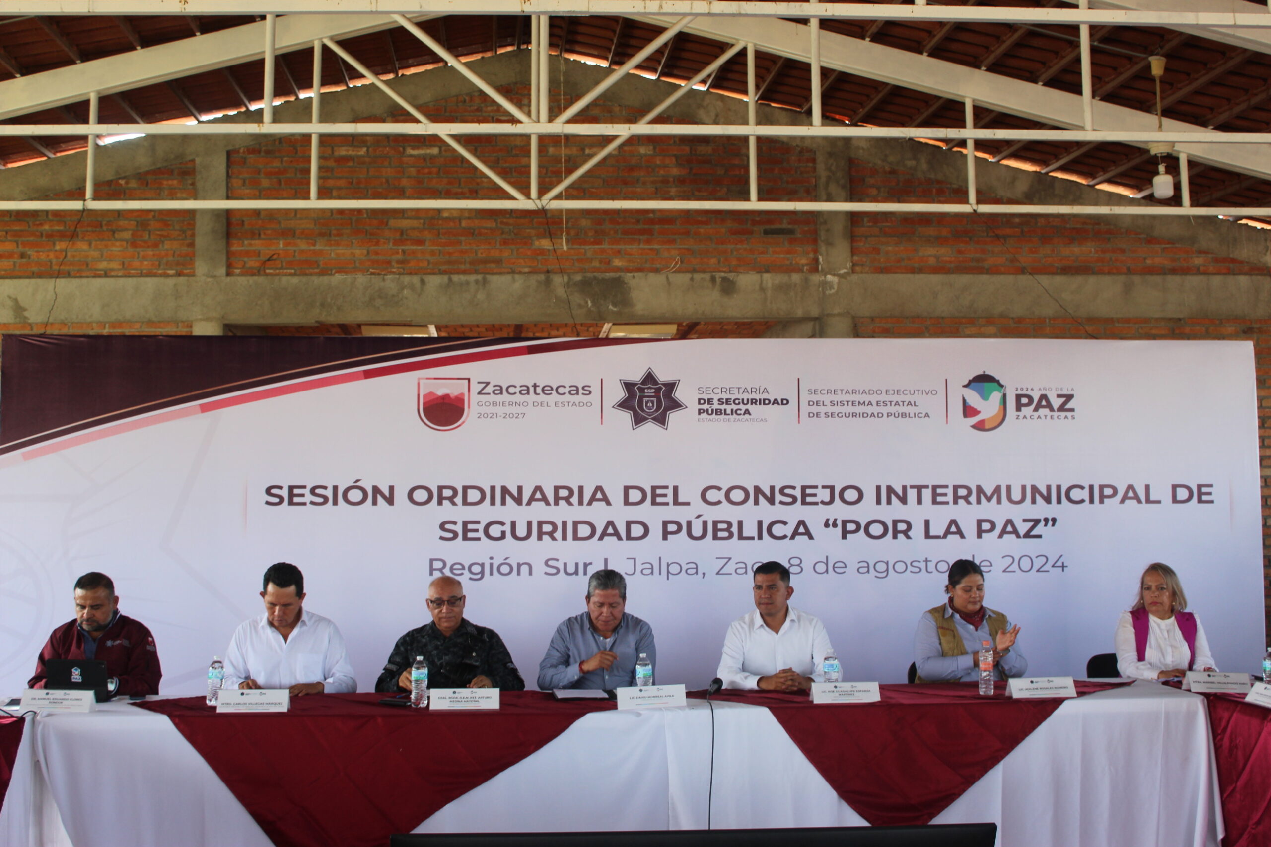 En su gira por el municipio de Jalpa, el mandatario encabezó la Sesión Ordinaria del Consejo Intermunicipal de Seguridad Pública Región Sur I, en presencia de representantes de la Decimoprimera Zona Militar, Guardia Nacional, Fiscalías generales de la República y de Justicia del Estado, así como alcaldesas, alcaldes y autoridades de Jalpa, Huanusco, Moyahua, Apozol, Juchipila, Joaquín Amaro, Nochistlán y Tabasco.