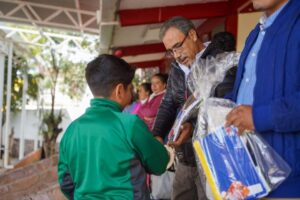 Durante la entrega, Juan Sánchez, titular de Desarrollo Social de Zacatecas, destacó que los paquetes incluyen los materiales básicos para las niñas y niños puedan cursar sus materias sin dificultades.