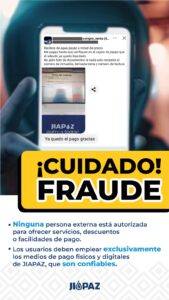 JIAPAZ llamó a la población a realizar sus pagos únicamente en los medios físicos y digitales oficiales, que son confiables: cajas, cajeros, el sitio web jiapaz.gob.mx y la aplicación móvil Mi JIAPAZ, así como las oficinas de recaudación y quioscos de servicios electrónicos de Gobierno del Estado.