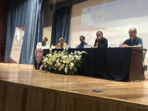 Continuando, la conferencia magistral ofrecida por Alberto Ortiz, del DEN de la UAEH UAZ, llevó el auditorio al clímax del evento, con el tema “Imaginario demonológico en el Nuevo Mundo”. El investigador habló de tratados de hechicería y superstición. Abordó el traslado del mito diabólico del Viejo al Nuevo Mundo. Para ilustrar la interesante teoría de la conquista del diablo realizando su propio apoderamiento en América, el conferencista se refirió a una selección de textos que van guiando este pensamiento sobre maldad innata, maldad introducida, territorio de conquista diabólica, además de confusiones entre ídolo, nahual y diablo. Finalmente, y para saber más sobre el tema que ha estudiado profusamente, recomendó la lectura de su libro “Diablo Novohispano. Discursos contra la superstición y la idolatría en el Nuevo Mundo”.