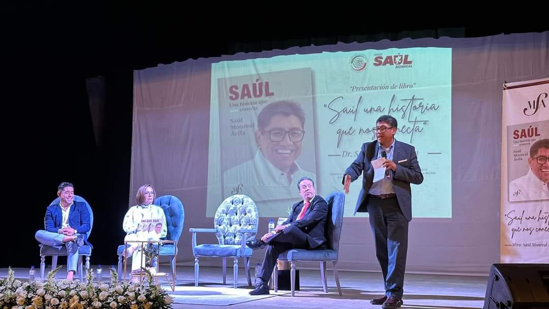 El senador Saúl Monreal, ante un teatro Hinojosa con lleno total, presento el día de ayer, 11 de octubre, su libro autobiográfico:” Saúl, una historia que nos conecta”. Los comentaristas invitados fueron el Mtro. Hebert herrera Quezada y el Mtro. Felipe Salazar, como moderadora estuvo invitada la Sra. Alicia de la cruz del Rio.