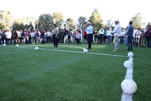 Cabe señalar que la cancha de futbol que inauguró tuvo una inversión de 916 mil 540 pesos, entre recurso estatal y municipal. La obra consistió en la rehabilitación de 1 mil 197 metros cuadrados de superficie de la cancha que incluyó colocación de pasto sintético fibrilado, pared de resguardo de la cancha a base de triplay y la colocación de malla.