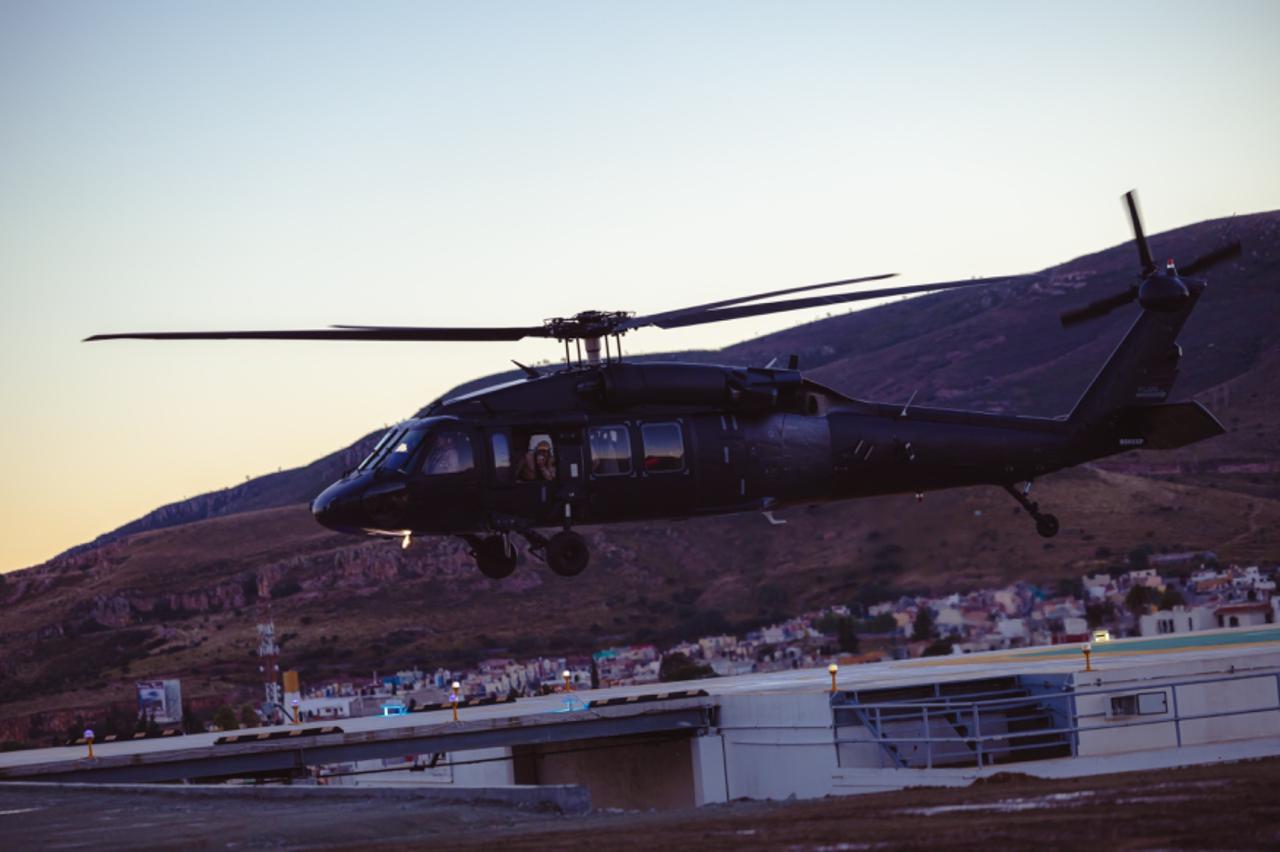 Proveniente de Estados Unidos, el helicóptero Black Hawk aterrizó este día en las instalaciones de la Secretaría de Seguridad Pública, en Guadalupe, Zacatecas, con una tripulación de la Unidad Aérea de Seguridad debidamente certificada para su debida operación.