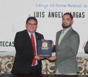“Yo, que soy solo un humilde poeta de la costa, como López Velarde fue un humilde poeta de provincia, que bien pude haber sido un pescador o un lanchero, agradezco y recibo con gusto y gratitud este premio que lleva el nombre de un poeta cuya obra me enseñó que lo íntimo, lo doméstico y lo mínimo, tienen siempre una dimensión universal”, así expresó Luis Ángel Vargas Castro al recibir de manos del rector de la Universidad Autónoma de Zacatecas (UAZ), Rubén Ibarra Reyes el premio Nacional de Poesía “Ramón López Velarde” 2024 por su obra titulada “La boda secreta de Elizabeth Taylor” presentada bajo el pseudónimo “Perla Peregrina”.