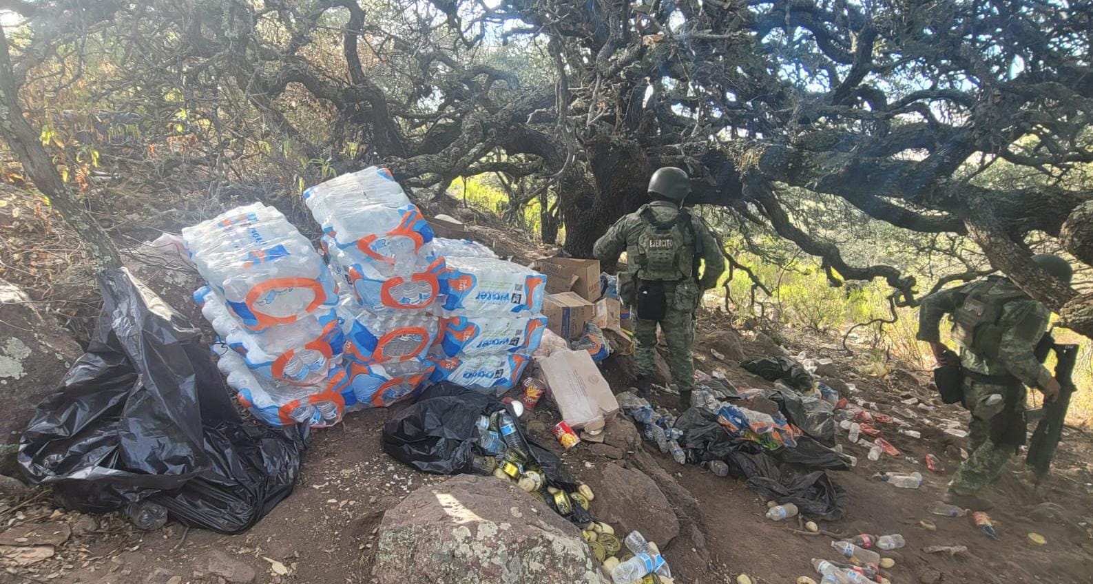 Al hacer reconocimientos terrestres en elevaciones cercanas a la comunidad, personal del Ejército Mexicano, la Guardia Nacional, el Grupo de Operaciones Rurales de Zacatecas (GORUZ) de la Policía Estatal Preventiva (PEP) y la Policía de Investigación de la Fiscalía General de Justicia del Estado de Zacatecas (FGJEZ), visualizaron estructuras ocultas entre los árboles, como plásticos de color negro y tiendas de campaña.