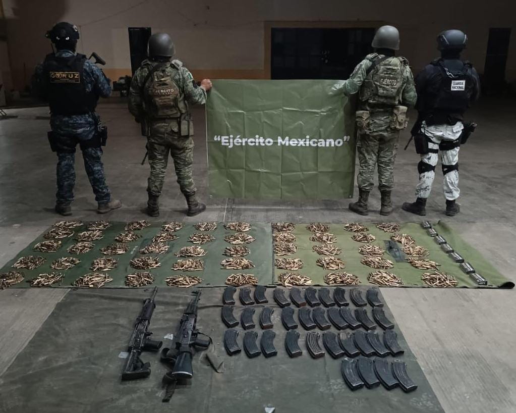 Durante este despliegue, se logró el aseguramiento de dos armas largas, 5 mil 130 cartuchos útiles y 34 cargadores, objetos que fueron abandonados al detectarse la presencia de las Fuerzas de Seguridad.