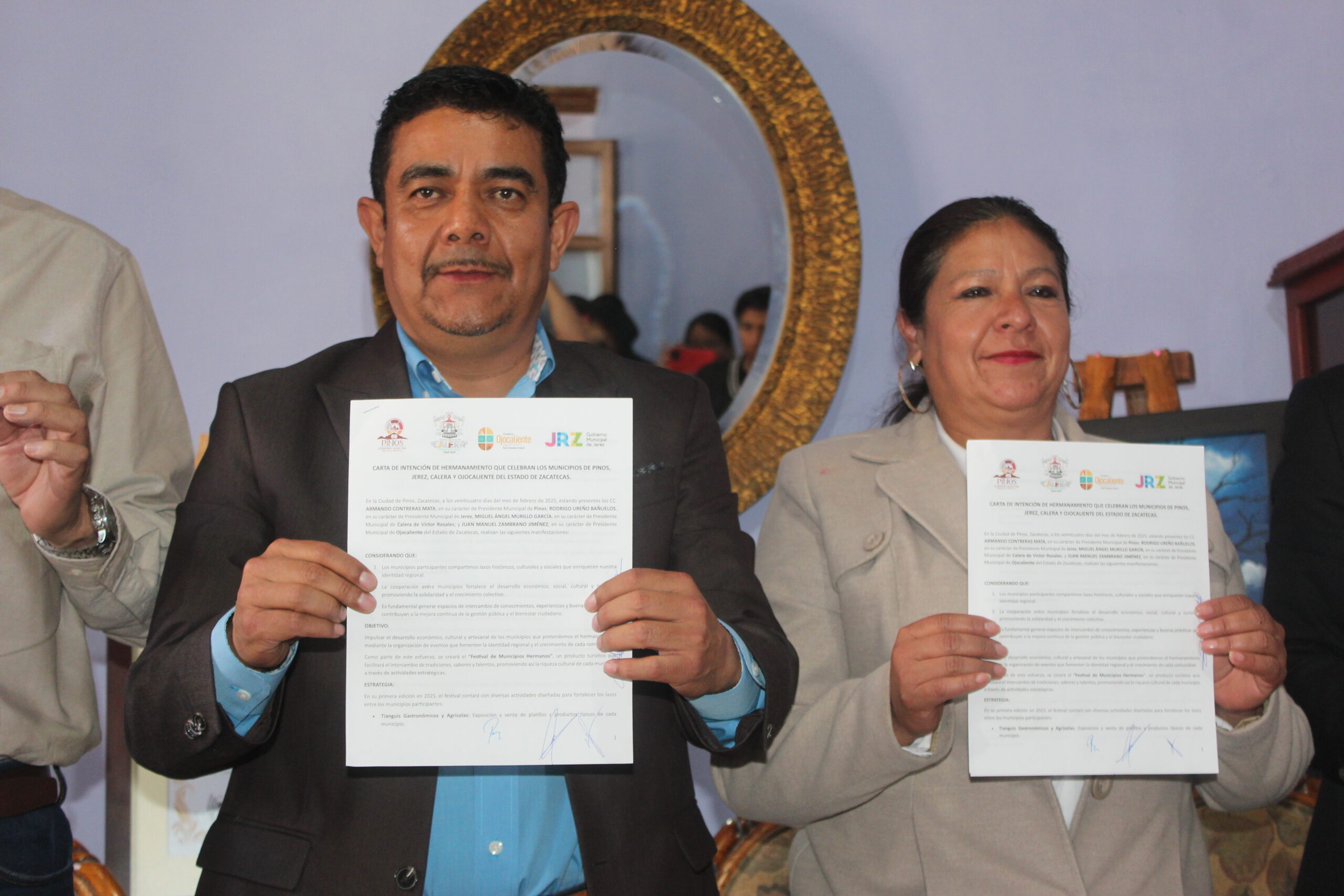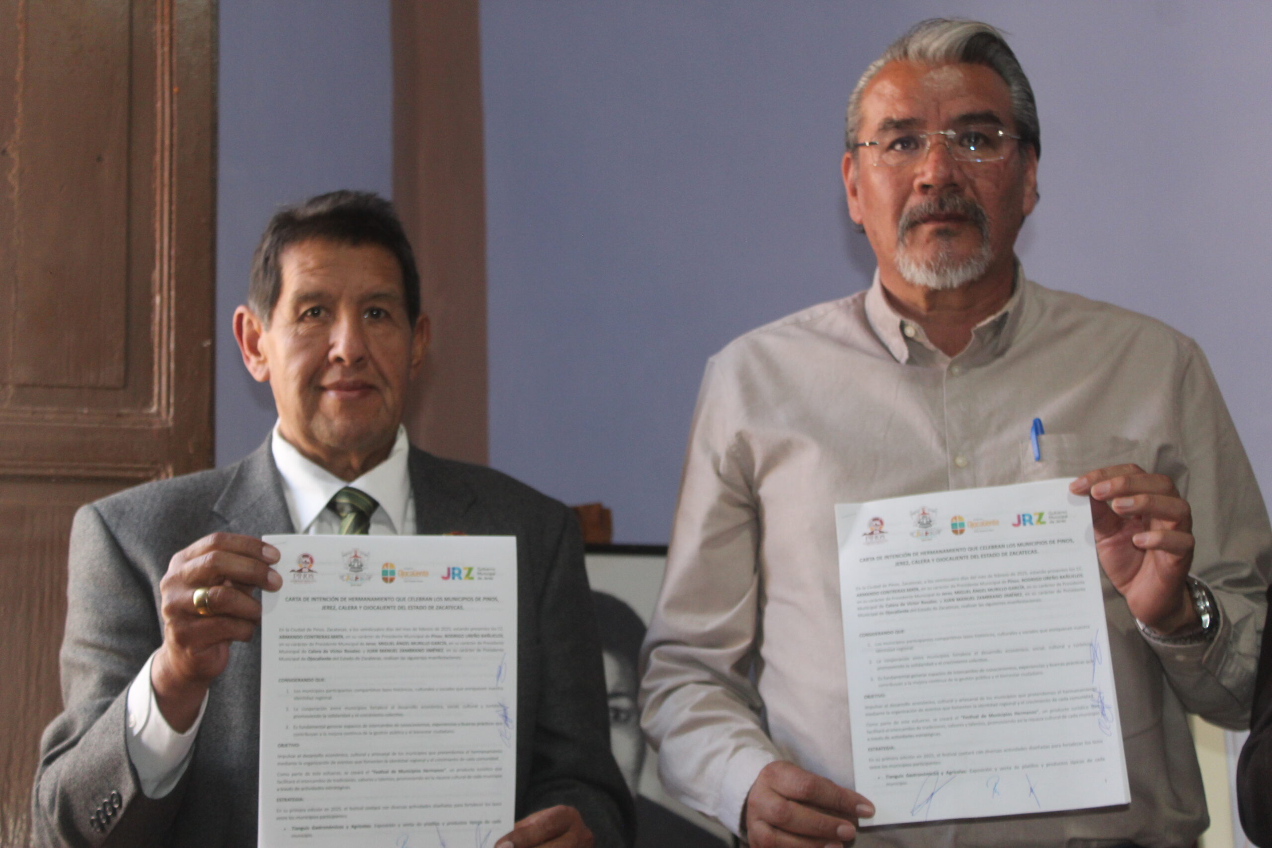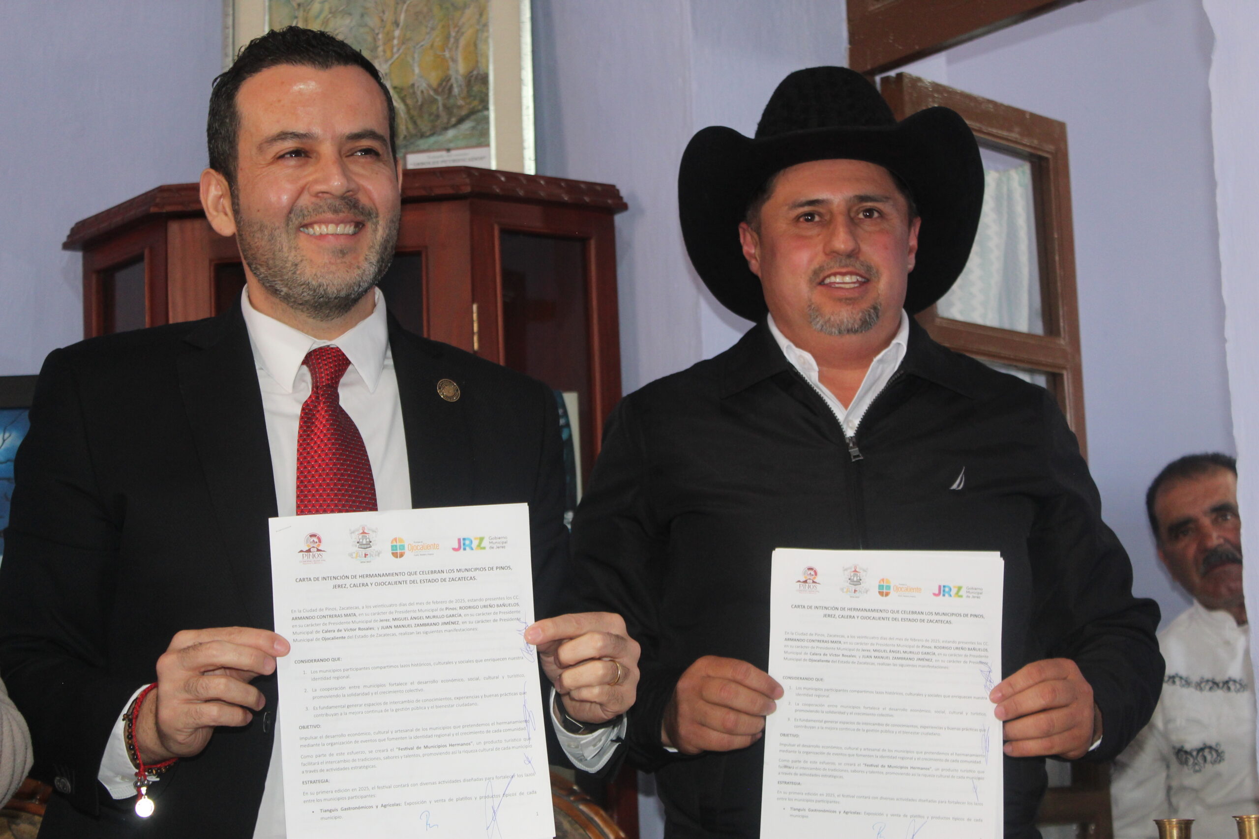 El evento se desarrollo en la cabecera municipal de Pinos, donde Armando Contreras, Rodrigo Ureño, Bernardo Gómez y Juan Zambrano, alcaldes de los municipios y secretario de gobierno de Calera, signaron este convenio que en algunos casos deberá ser avalado por sus cabildos, teniendo como testigo de honor al diputado federal Ulises Mejía Haro.