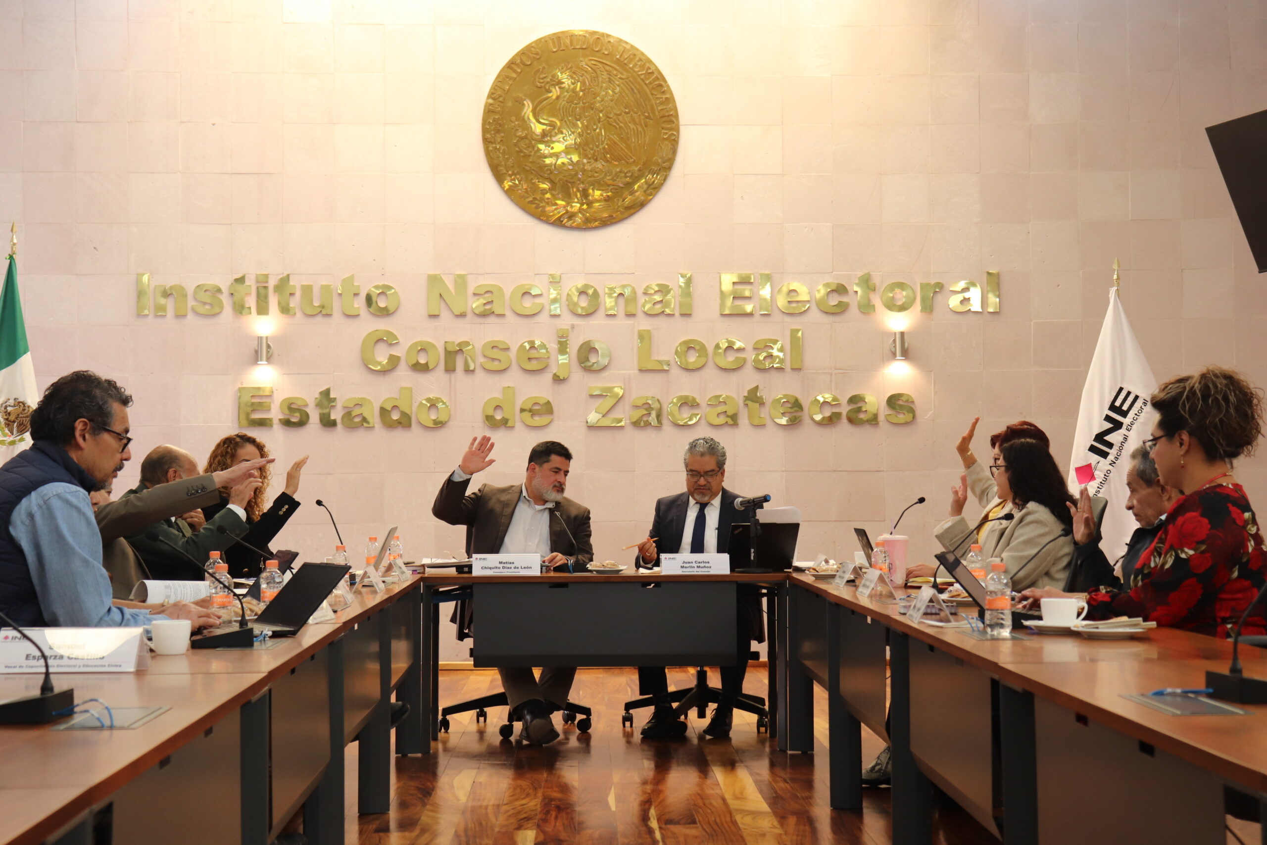 El Consejo Local del Instituto Nacional Electoral (INE) en Zacatecas realizó sesión extraordinaria en la que se dio cuenta de avances que se tienen en diversos temas de la preparación del Proceso Electoral con elección concurrente del 1 de junio para diversos cargos del Poder Judicial de la Federación y del Poder Judicial del Estado de Zacatecas.