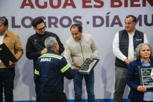 En el evento, el Gobernador David Monreal entregó un reconocimiento en forma de medalla conmemorativa a Pepe Saldívar, por su compromiso y labor destacada en favor del pueblo de Guadalupe en materia de infraestructura hídrica.