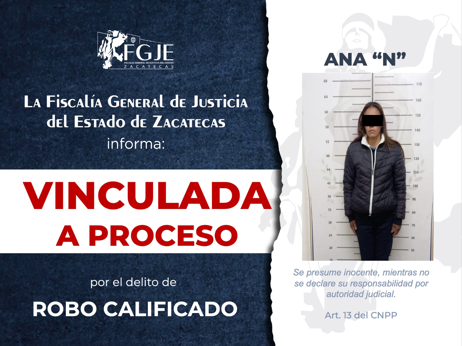 La Unidad de Robos de la Capital, logró la vinculación a proceso de Ana “N” y Salvador “N”, en su calidad de autores materiales por el delito de robo calificado en perjuicio de una cadena comercial, se otorgaron 02 meses de investigación complementaria, y se impuso la prisión preventiva como medida cautelar.