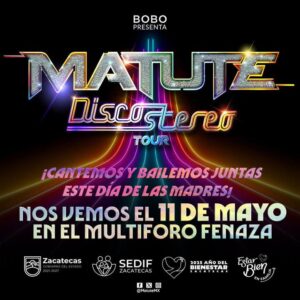 Como parte de los festejos por el Día de las Madres, el Gobierno del Estado, que encabeza el mandatario David Monreal Ávila, prepara los detalles del concierto gratuito de la reconocida banda mexicana Matute, que se llevará a cabo este domingo 11 de mayo, a las 20:00 horas, en el Multiforo de la Feria Nacional de Zacatecas (Fenaza).