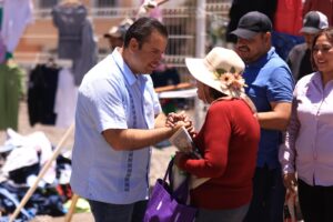 En el marco de los festejos por el Día de la Madre, el presidente municipal de Zacatecas, Miguel Varela, inició una jornada de entrega de obsequios en distintos puntos de la capital, comenzando por el tradicional Tianguis Francisco E. García “El Ete”, donde compartió un momento cercano y emotivo con decenas de madres de familia.