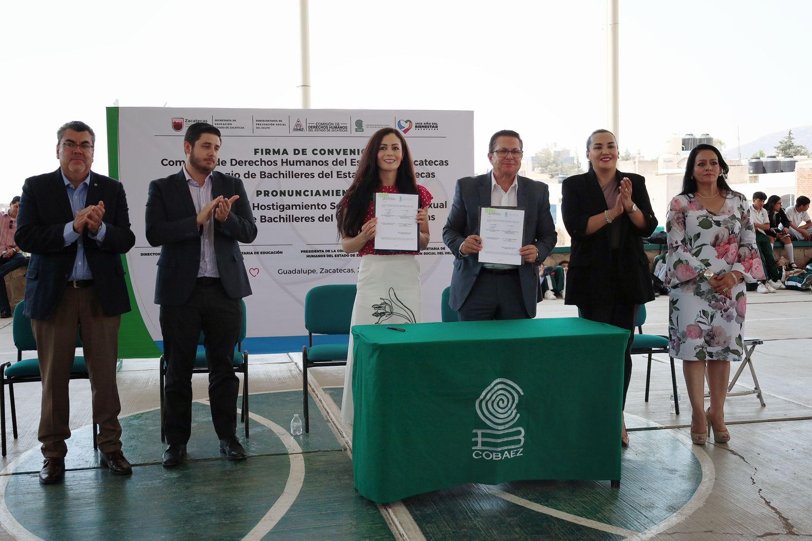 Como parte de las acciones, se firmó el pronunciamiento sobre cero tolerancia al hostigamiento y acoso sexual, por parte de la CDHEZ, el Cobaez y la Subsecretaría de Prevención Social del Delito, donde se refrenda el compromiso de mantener espacios libres de violencia y establecer protocolos claros para atender, prevenir y sancionar cualquier acto de hostigamiento o acoso dentro del entorno escolar.
