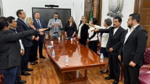 Por su parte la secretaria general, Lorena Jiménez Sandoval, leyó el nombramiento que a la letra dice “con fundamento en el Artículo 24 de la Ley Orgánica, emite el presente nombramiento como defensor de la Universidad Autónoma de Zacatecas, Francisco García Salinas, cargo que desempeñará para el periodo 2025-2029 a partir de la fecha del presente conforme a lo establecido en el Artículo 71 de la Ley Orgánica de la universidad y en atención al acuerdo de la Sesión Especial del H. Consejo Universitario de fecha 30 de mayo de 2025 …” e hizo entrega de los mismos a los nuevos defensores.