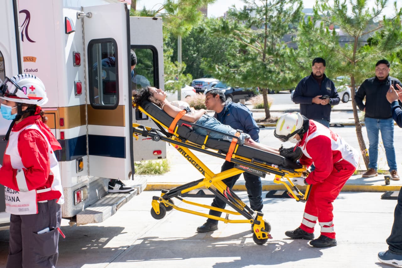 Como parte del simulacro nacional, en el dispositivo interno del Edificio A se registraron dos personas lesionadas, que “fueron trasladadas por elementos de la Cruz Roja y la Coordinación Estatal de Protección Civil.