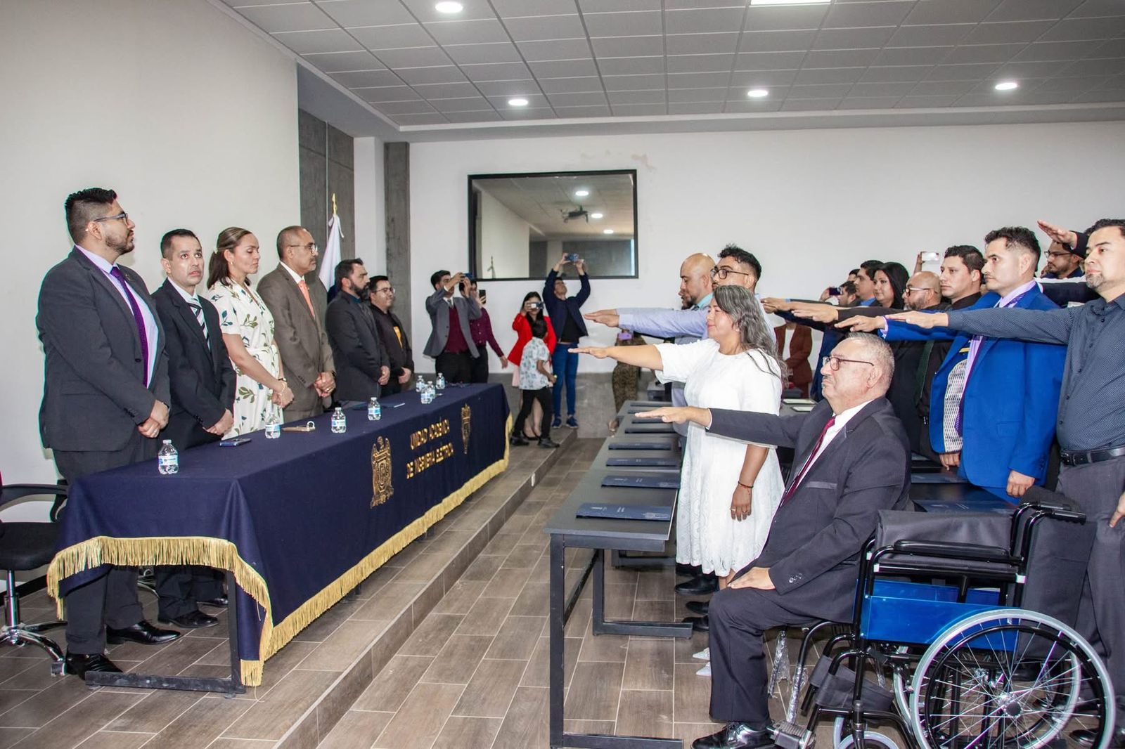 El rector de la Universidad Autónoma de Zacatecas (UAZ), Ángel Román Gutiérrez, junto a autoridades de la de la Unidad Académica de Ingeniería Eléctrica (UAIE), presidieron la ceremonia de toma de protesta a 24 ingenieras e ingenieros egresados del programa de Ingeniería en Electrónica Industrial.