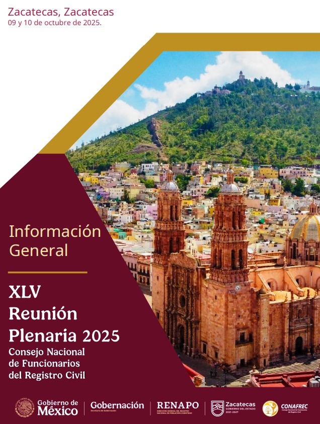 Zacatecas se prepara para ser la sede de la 45ª Reunión Plenaria de la Comisión Nacional de Funcionarios del Registro Civil (Conafrec), a realizarse del 8 al 10 de octubre, en coincidencia con el 45 aniversario de la creación del Registro Nacional de Población (Renapo), institución fundamental para la identidad y los servicios civiles en México.